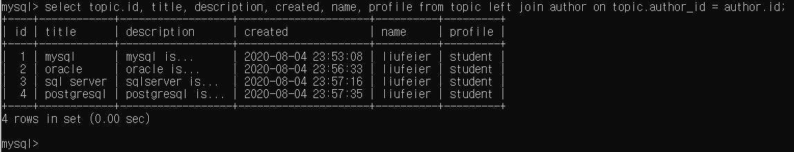 select * from topic left join author on topic.author_id = author.id;
