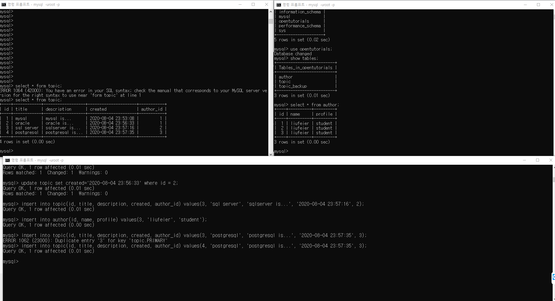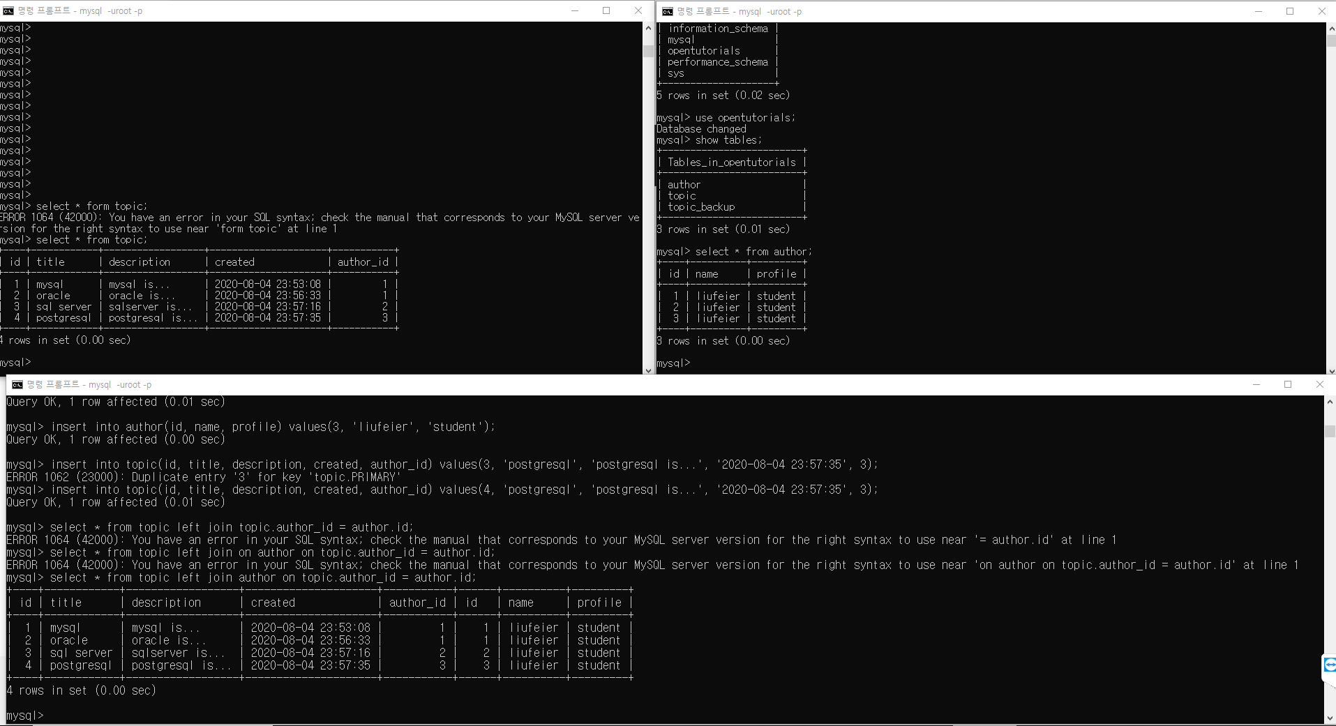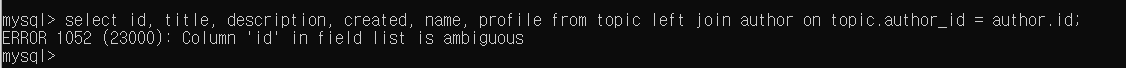 topic테이블과 author테이블 둘 다 id가 있는데 어느 id를 말하는거냐라고 묻는거라고 한다