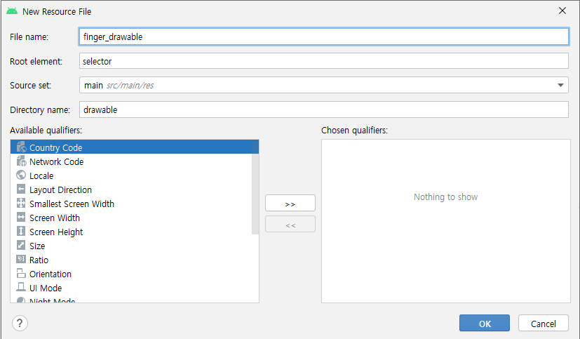 프로젝트 창에서 drawable - new - Drawable Resource File