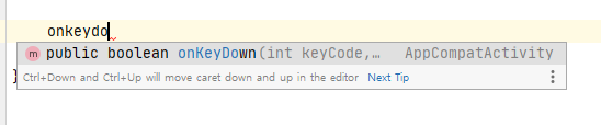 안드로이드 스튜디오에서 ctrl + 스페이스를 누른 상태에서 onkeyd까지 입력하면 onKeyDown 자동완성이 뜬다