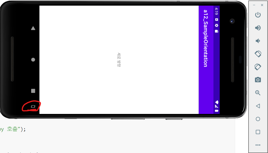 단말 방향 바꾸려면 회전 아이콘 클릭 후 시스템 버튼 옆에 뜨는 회전 모양을 클릭
