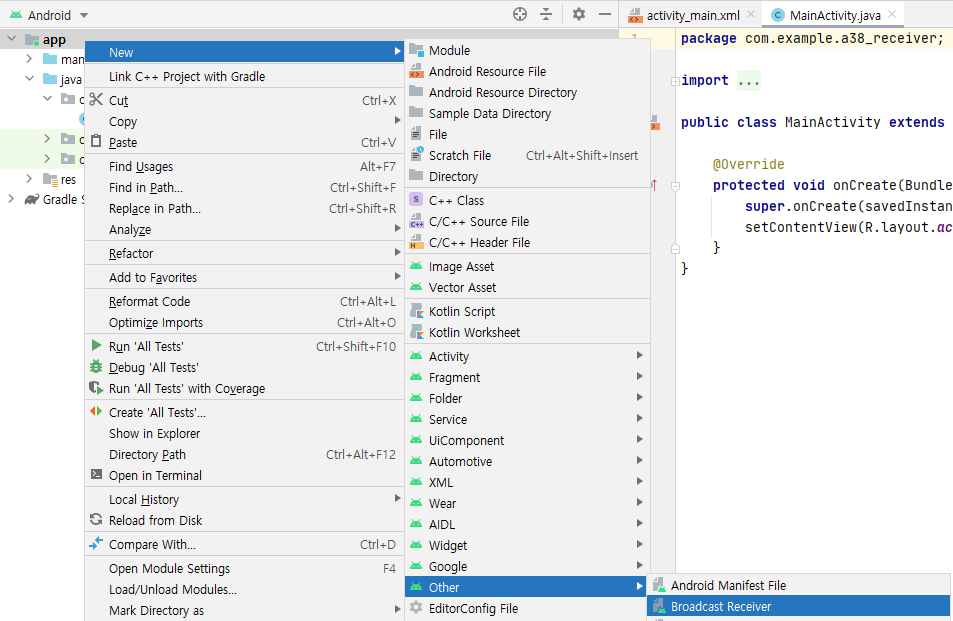 물론 다른 앱에 브로드캐스트 수신자를 만들어야한다