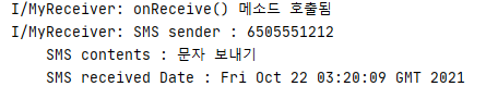 Log.i(TAG, "onReceive() 메소드 호출됨");