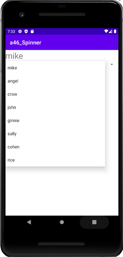 스피너 또는 콤보박스를 누르면 그 아래쪽에 작은 창이 나타나는데, 그 안에 들어있는 여러 데이터 중의 하나를 선택할 수 있도록 되어있다
