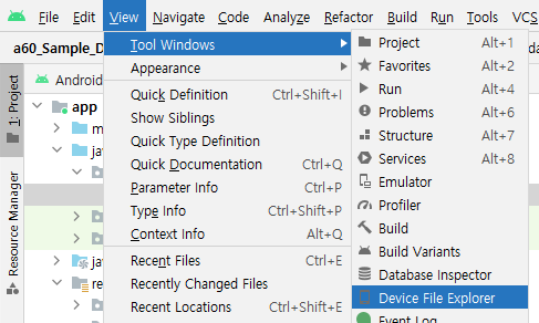 DB를 확인하려면 Device File Explorer 화면을 띄워야한다
