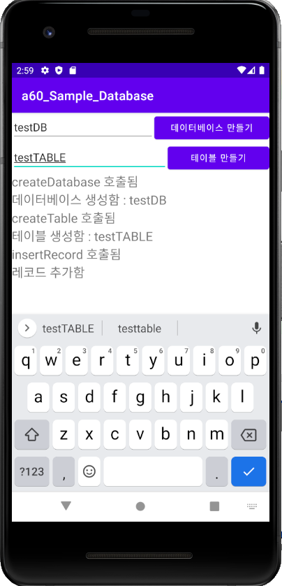 android:text="데이터베이스 만들기" />