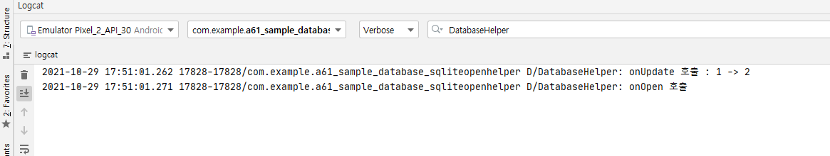 SQLiteOpenHelper 클래스로 새로 생성 하면서 버전 값을 정해주면, 기존 데이터베이스의 객체에 버전 값이 넘겨지는게 확인되었다