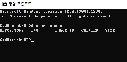 cmd에서 docker images를 입력하면 제대로 설치되었는지 확인 가능하다
