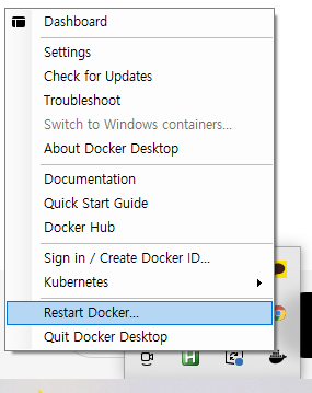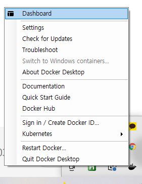대쉬보드를 클릭하면 도커 GUI가 뜬다