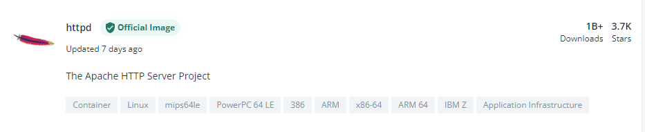 도커 허브에서 아파치 웹 서버의 이름은 httpd이다