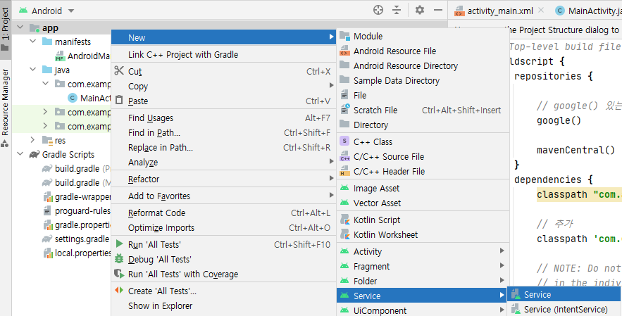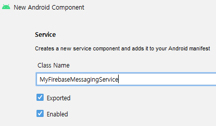 FCM을 사용하려면 앱 프로젝트 안에 두 개의 서비스를 만들어야한다