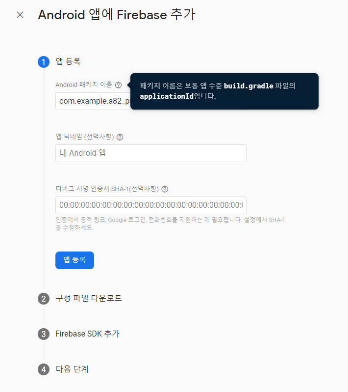 이 인증 정보는 어떤 사람이 어떤 서비스에 사용하는지 구별하기 위한 것이므로 개발자가 만드는 애플리케이션을 FCM 사이트에 등록해야 사용할 수 있다
