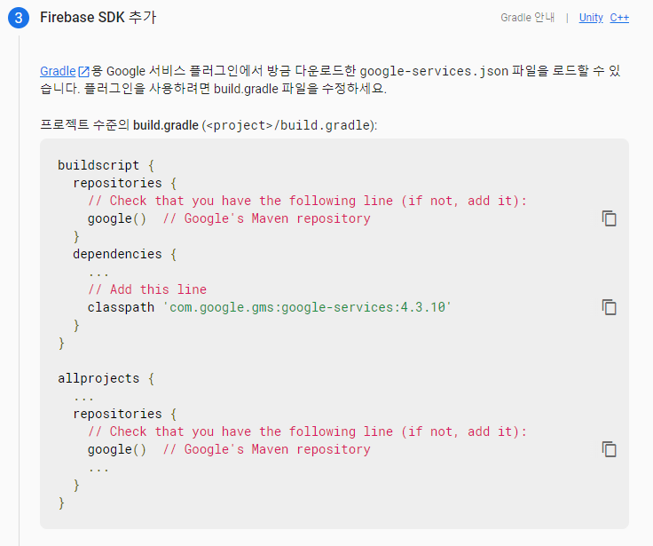 안드로이드 앱 프로젝트 안에서 설정이 추가로 필요하다는 내용이다