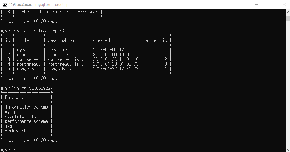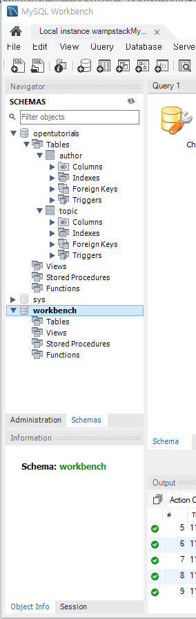cmd에서도 확인해보면 workbench 스키마가 만들어진 것을 확인할 수 있다