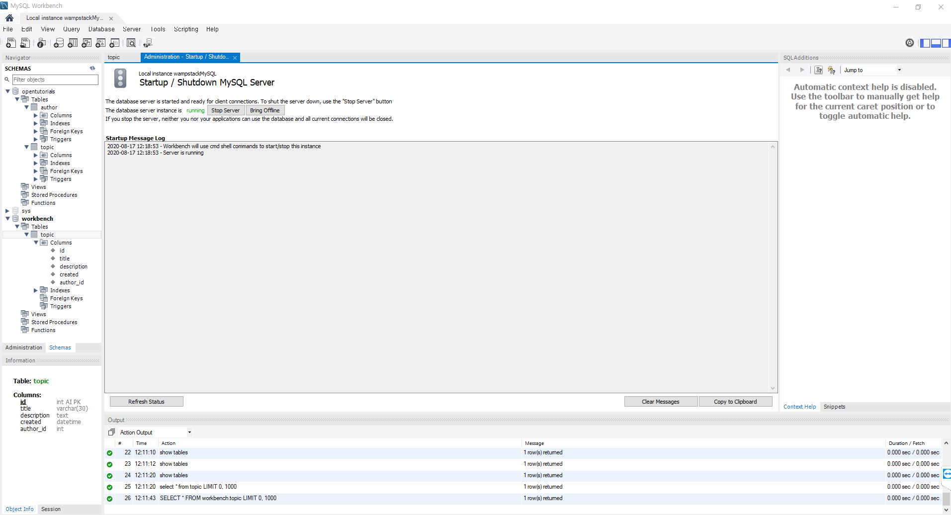 상단 메뉴의 server- dashboard에 들어가면 나중에 실제로 서버를 돌릴때 db 사용량이나 cpu 점유율 같은 것을 볼 수 있다고 한다