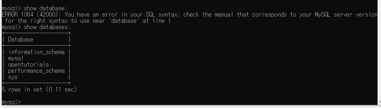 앞으로 쓸 명령어들은 opentutorials 스키마에 있는 표를 대상으로 명령을 실행하게 된다고 한다
