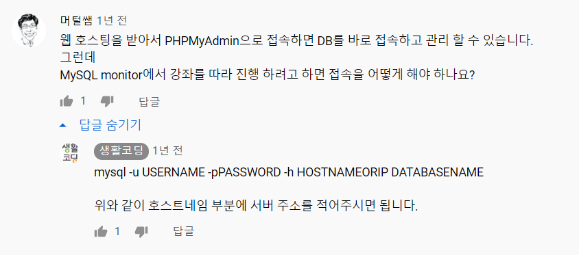 웹호스팅을 받아서 phpmyadmin으로 접속하면 db를 바로 접속하고 관리할 수 있다고 한다