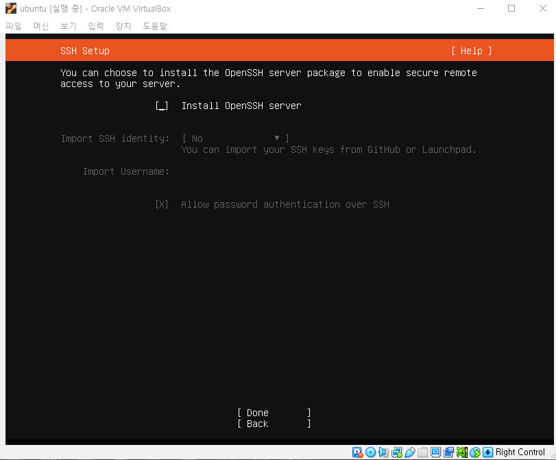 ssh는 지금 설정하지 않고 패스