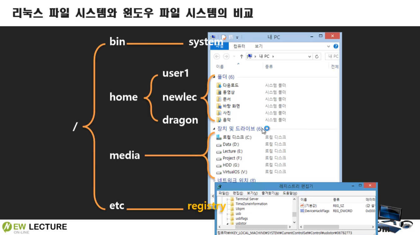 - ex) mount/mnt/chdrom(CD-ROM일 경우), mount/mnt/floppy(플로피 디스크의 경우), mount/dev/sda/mnt/usb (usb 메모리의 경우)