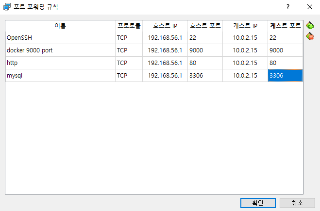 버츄얼박스에서 80번 포트 개방, 3306도 개방
