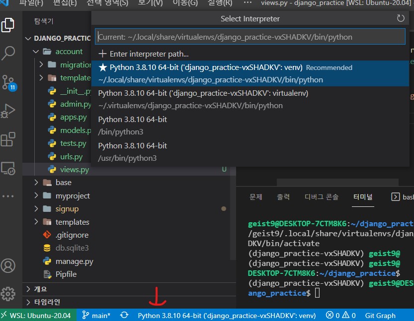 파이썬으로 작업시 pipenv 같은 가상환경을 사용하는 경우, 가상환경 위치 지정이 가능하다